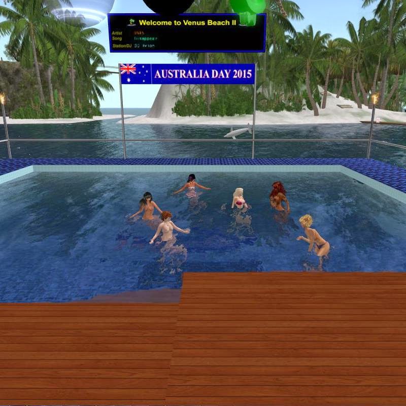 Last evening, builder-extraordinaire Avion replicated the strange looking stadium in Glendale, Arizona, loaded some very realistic cheerleader animations, and played two hours of music themed (some quite creatively) to the American football Super Bowl. Vanya, Surfer, and Bea all tied for "Best American Football" honors.